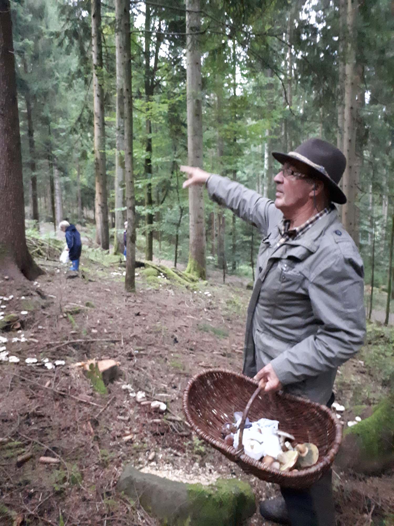 Foto: Irmgard LehmannEs ging in dieser Tour nicht darum den Korb randvoll mit Pfifferlingen und Steinpilzen zu füllen, sondern Neues zu entdecken. Schwarzwaldguide Xaver Weber führte durch den Wald und zeigt gleich zu Beginn den Knollenblätterpilz als eines der giftigsten Exemplare. Gerade dort im Wald war das Pilzaufkommen sehr hoch, die Artenvielfalt in diesem Jahr besonders beeindruckend und so konnten auch Pilzkenner hier und da einen neuen Speisepilz neu entdecken.