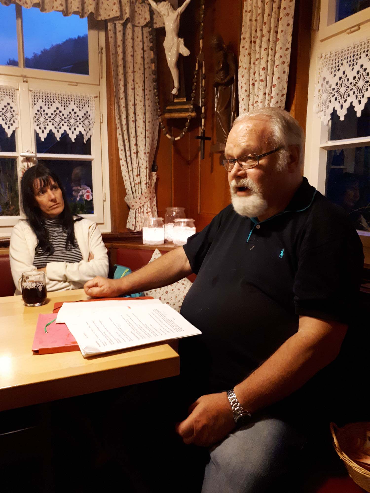 Im Anschluss an die einstündige Tour im Wald ging es ins Gasthaus Linde, das speziell für die Gruppe öffnete. Dort wurden die Pilze nach »essbar« und »noch zu bestimmen« unterteilt. Dabei kam der Pilzsachverständige Christian Petersen ins Spiel. Er referierte über Lamellenpilze und Röhrlinge und berichtete von giftigen Arten. Die gesammelten Exemplare wurden bestimmt und einige der Fachleute im Kreise der Zuhörer wussten das ein oder andere Rezept zu erzählen. Es ist eine Fortsetzung der Tour im nächsten Jahr durch einen Kochworkshop geplant – falls es denn Pilze gibt.