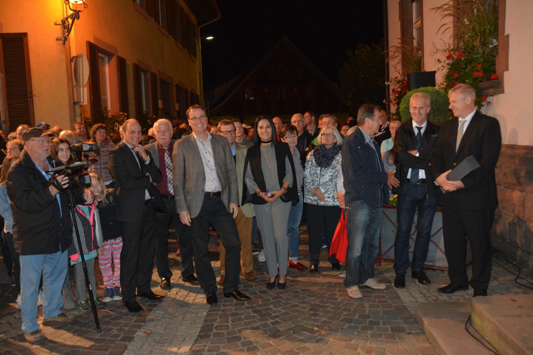 Zwischenzeitlich war der Platz rund um das Rathaus vollgelaufen, unter den Gästen auch die kommunale Politprominenz der Umgebung. Wohl der überwiegende Teil der Bevölkerung schien mit einer Entscheidung, wie sie auch immer ausgehen mochte, im ersten Wahlgang zu rechnen. Die kulturellen Vereine waren aufmarschiert, der Bauhof hatte in weiser Voraussicht den Maien gerichtet.