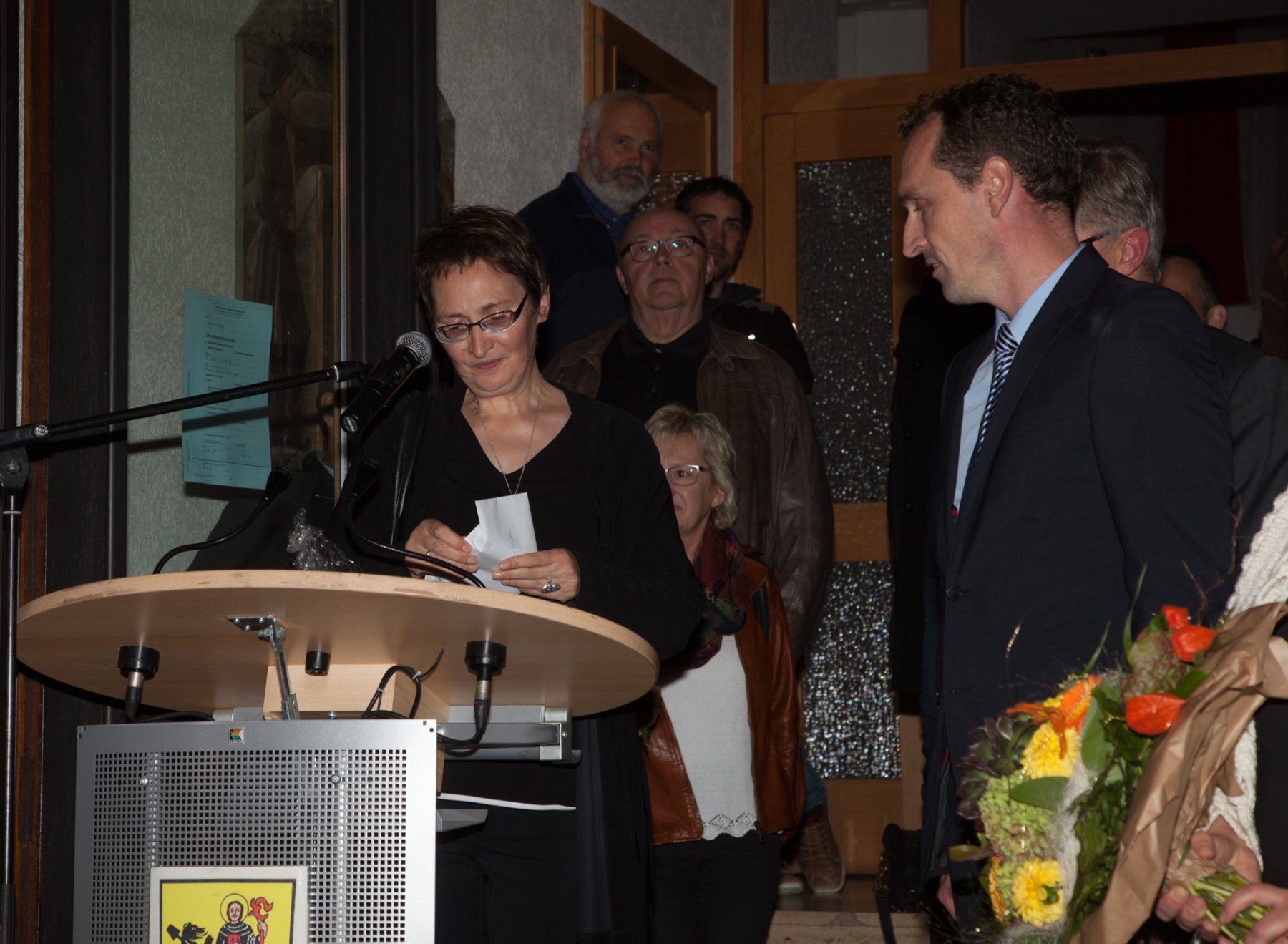 Bürgermeister Siegfried Huber gab als Wahlleiter das Ergebnis bekannt. Auch hier stieg noch einmal die Spannung, als er mitteilte, »um jetzt die Bürgermeisterin« – Applaus schien einzusetzen – und Huber fuhr fort »oder den Bürgermeister zu sehen.« Dann endlich folgten die mit Neugier erwarteten Zahlen. Dominika Hättig erhielt für ihr Engagement im Wahlkampf anerkennenden Applaus und für Richard Weith gab es die erlösende und überwältigende Zustimmung aus dem weiten Rund.