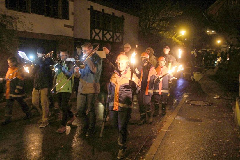 Die Spielszene der Grundschüler im Foyer der Schule unter der Leitung von Manuela Isaak bildete den Auftakt der Feier und stellte die Legende um den Heiligen lebendig dar. Anschließend wurden die mitgebrachten Laternen entzündet und der Umzug bewegte sich durch die dunkle und regnerische Nacht. Den Zug führte Carla Lehmann als St. Martin auf einem Pony an, begleitet von der Jugendfeuerwehr mit ihren Fackeln und der Bläserjugend der Miliz- und Trachtenkapelle. Der Rundweg führte zurück an die Schule, wo die Eltern der Klasse 4 die Teilnehmer mit Kuchen, heißen Würsten, Punsch und anderen Getränken bewirteten. Die Kinder freuten sich zudem über die Martinswecken, die von der Gemeinde und der Volksbank gespendet wurden.