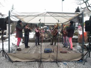 Abwechslungsreich war auch in diesem Jahr wieder das Rahmenprogramm, moderiert von Felix Huber. Zur Eröffnung sangen und tanzten als Wichtel verkleidete Zweitklässler der Brandenkopf-Schule und erfreuten die Zuschauer mit dem lustigen Sketch vom »eiligen Weihnachtsmann«, der beinahe die Bescherung der Kinder verschlafen hätte. Magier Alfred Metzler zog mit seinen Zauberkünsten die Zuschauer in den Bann und Momente des Innehaltens und zu Ruhekommens boten die musikalischen Beiträge. Besinnliche Weisen stimmten eine Abteilung der Jugendkapelle und ein Bläserensemble der Miliz-und Trachtenkapelle an, das Duo Bettina & Helena begeisterte mit seinen internationalen Songs und Philipp Armbruster überzeugte als Virtuose auf dem Marimbaphon.