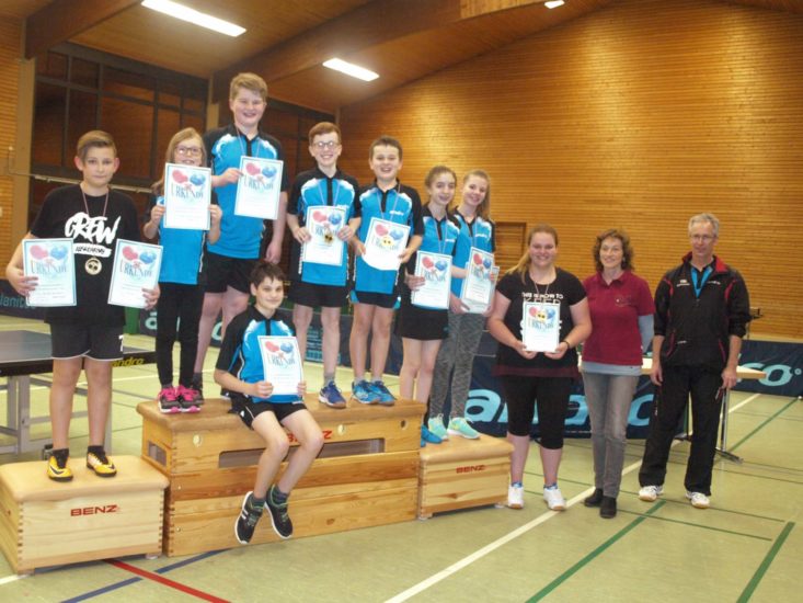Die Ergebnisse der Doppelwettbewerbe: Bei den Minis siegten Alexander Simon/Josefine Schwarz vor Philipp Berger/Lana Gießler und Nathalie Allgaier/Mia Wacker. Schüler: 1. Simon Volk/Kim Hättig; 2. Marvin Wacker/Julien Hertig; 3. Luca Gießler/Marc-Rene Pfend. Jugend Mixed-Doppel: 1. Max Huber/Lara Lehmann; 2. Lea Huber/Rico Hessler; 3. Hannah Huber/Yannik Pfend 4. Tom Lehmann/Sarah Herrmann.
