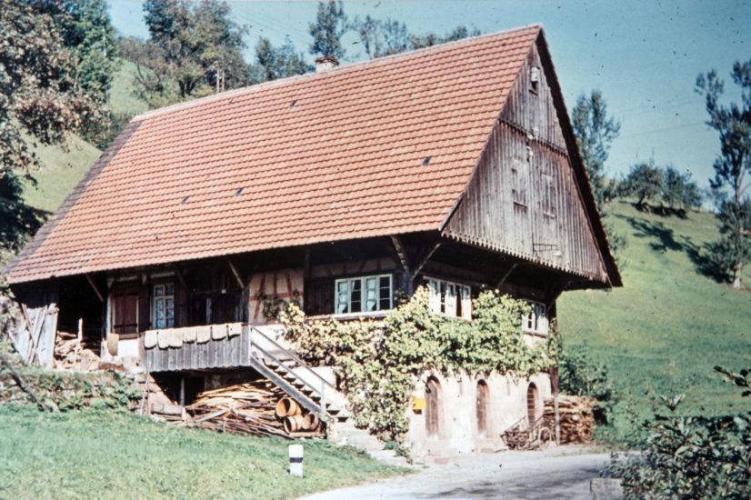Immerhin gab es schon damals noch zu Zeiten der deutschen Bundespost einen Briefkasten (vordere linke Hausecke), der regelmäßig und pünktlich geleert wurde. Von der damaligen Bausubstanz ist heute nicht mehr viel zu erkennen. Mit dem Umbau des Gebäudes begann die Familie Ficht Ende der 1950er Jahre.