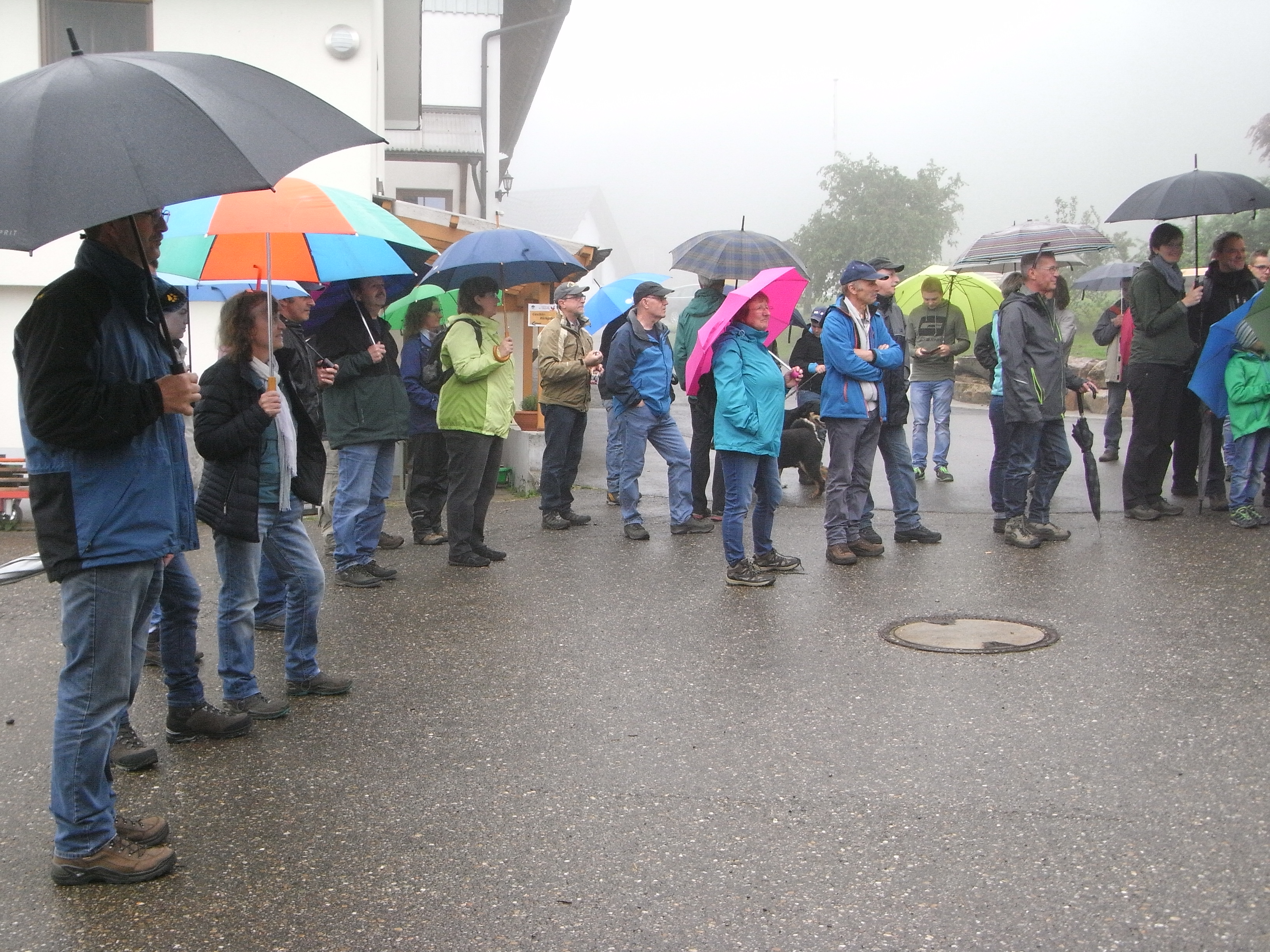 So machten sich bei nicht ganz sommerlichen Temperaturen rund 110 Personen am Sonntag auf den Weg zu einer Rundwanderung. Der Weg führte vom idyllischen Löcherhansenhof in Richtung Löcherwasen, anschließend über die Feimeck wieder zurück. Das wechselhafte Wetter trübte dabei in keinster Weise die gute Stimmung.