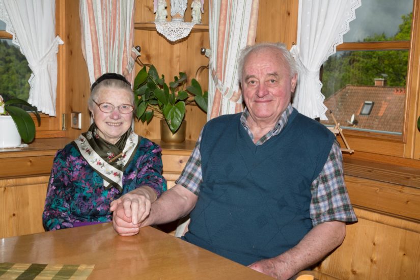 Wilhelm Hug, Jahrgang 1932, wuchs auf dem Harkhof als zweitältestes von vier Kindern der Eheleute Franziska und Wilhelm Hug auf. Nicht weit davon entfernt, auf der Gromet in Zuwald, zählte die Familie von Luise und Fridolin Huber zehn Kinder. Die zweitjüngste Tochter Elisabeth erblickte 1934 das Licht der Welt. Kennengelernt hat sich das Jubelpaar während des Peter- und Paulfestes 1956 in Bad Peterstal. »Berge und Täler kommen nicht zusammen, aber die Menschen«, erinnert sich Elisabeth Hug an eine Redensart.