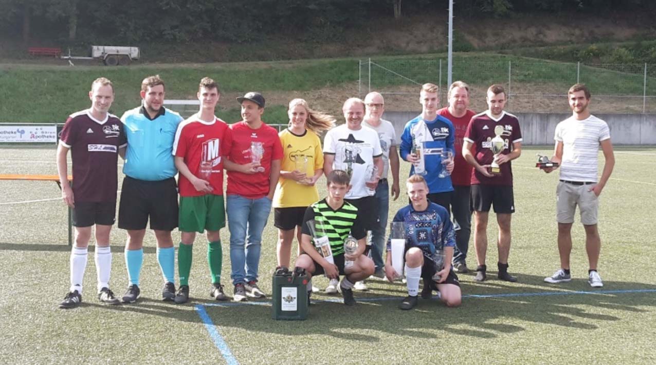 Mit vier erzielten Treffern wurden David Hug von der Firma Rombach und Markus Schnaiter von der DJK mit der Torjägerkanone ausgezeichnet. Bei der Siegerehrung erhielten die vier ersten Mannschaften Bierpreise, welche von Lothar Neuber-ger von der Schlossbrauerei Schmieheim gespendet wurden. Auch Bürgermeister Richard Weith, der bei der Siegermannschaft mitspielte, spendete von der Gemeinde aus ein Fass Bier für alle teilnehmenden Mannschaften.