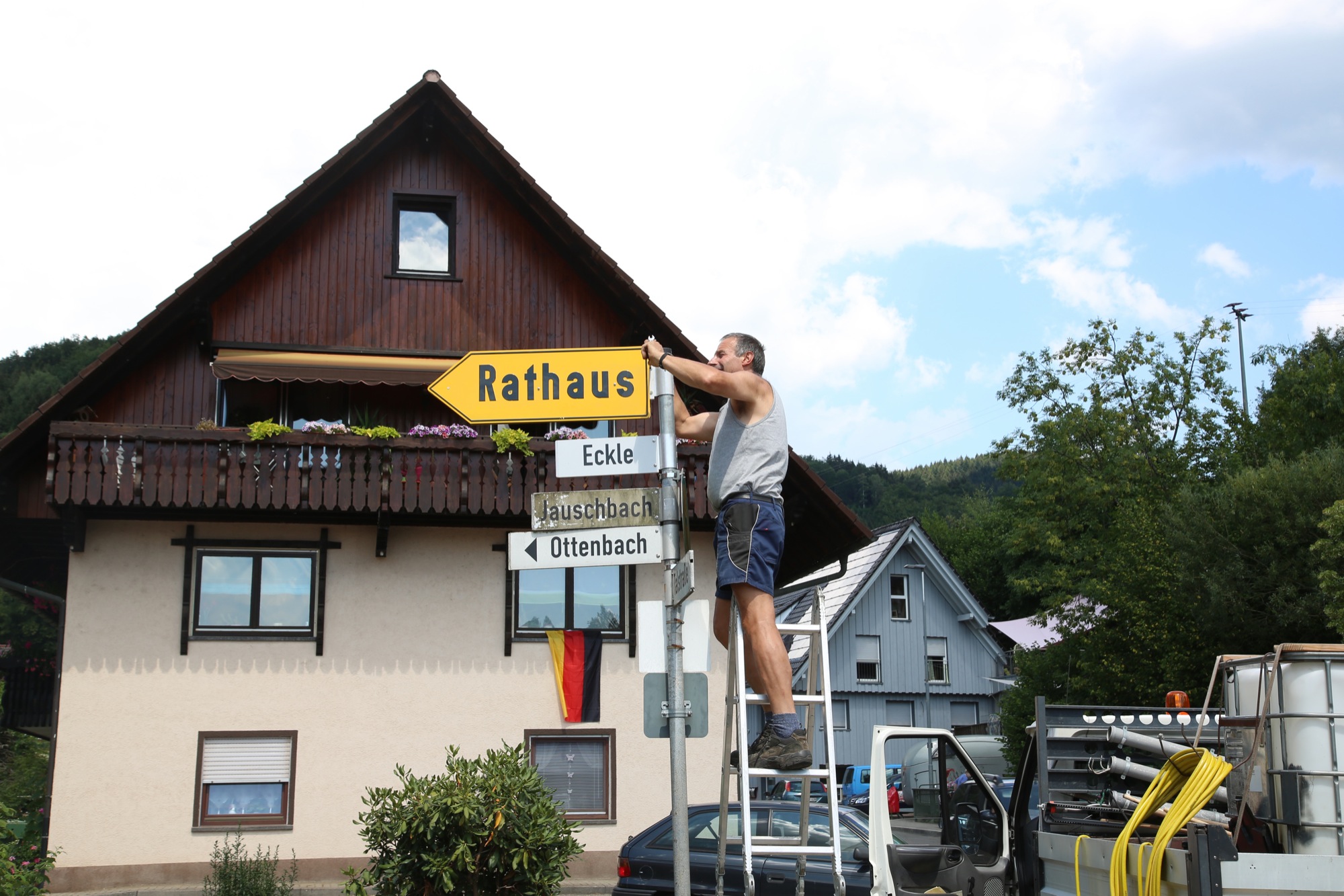 »Endlich«, wird sich der eine oder andere Bürger im Obertal gedacht haben, »endlich wird hier was zurechtgerückt.« Das Hinweisschild »Rathaus« am Eingang des Jauschbachtales zeichnet die schleichende Verschiebung der Attraktivität des Ortes talaufwärts nur andeutungsweise nach.