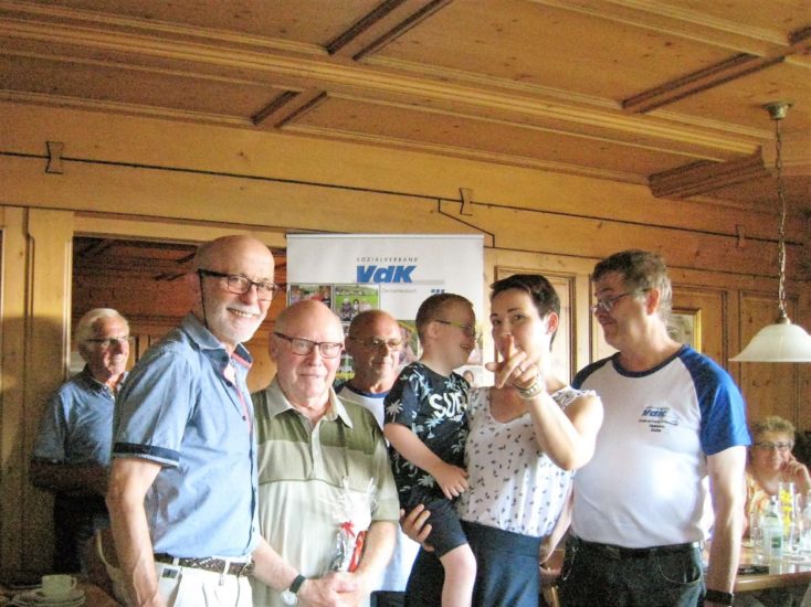 Ein Sommerfest war es im wahrsten Sinne. Die Temperaturen bewegten sich im Fieberbereich. Doch die VdKler wurden nicht geröstet. Für sie war drinnen die gute Stube reserviert, die etwas kühler war. Nach Kaffee und Kuchen erhielt der Nachmittag eine nachdenkliche und eine feierliche Note. Friedebert Stehle informierte die Anwesenden darüber, dass er wenige Tage zuvor mit Ingrid Nock bei der Trauerfeier für den verstorbenen VdK Ehrenpräsidenten Walter Hirrlinger war. Seit Jahren hatte der Ortsverband guten freundschaftlichen Kontakt mit ihm und seinem Stammverein VdK Esslingen. »Wir verlieren mit Walter Hirrlinger einen guten Freund. Unsere Anteilnahme gilt seiner Frau Lore Hirrlinger, wir fühlen mit ihr«, ehrte Stehle den Freund. Eine Schweigeminute gab es zum Gedenken.