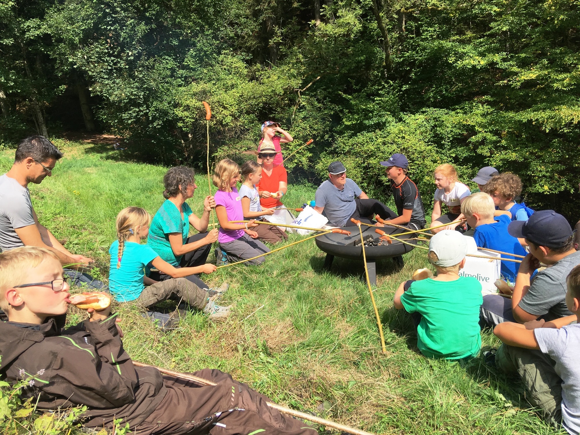Den Abschluss des diesjährigen Kindersommers bildete ein Waldtag mit Förster Hans Lehmann. Am Morgen ging es bei strahlendem Sonnenschein am Kohlplatz im Jedensbachtal los. Zuerst mussten Weidenzweige geschnitten werden, bevor es auf die Wanderung zur Jagdhütte im oberen Jedensbachtal gehen konnte. Hier wurde erst einmal kräftig gevespert. Anschließend konnten die Kinder nach Herzenslust mit verschieden dicken Weidenzweigen arbeiten. Es wurden Hütten mit weichen Moosbetten gebaut, Körbe geflochten, Pfeil und Bogen geschnitzt sowie Mandalas gelegt. Zwischendurch wurden Würstchen gegrillt und Weckle gegessen. Am Nachmittag konnten die Kinder sich noch spielerisch in das Leben eines Eichhörnchens einfinden und dabei feststellen, dass es für ein Eichhörnchen im Winter manchmal gar nicht so leicht ist zu überleben. Bei aufziehendem Regen wurde schließlich der Rückweg zum Kohlplatz angetreten. Nicht nur die Kinder hatten viel Spaß. Auch die Erwachsenen genossen den Tagesausflug in der freien Natur.