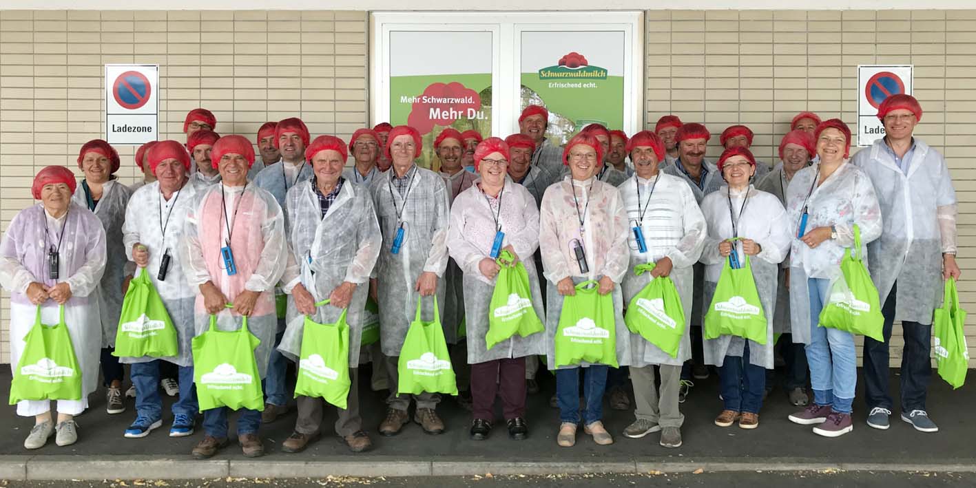 Nach der Begrüßung durch Geschäftsführer Andreas Schneider zeigten zwei sehr charmante und ebenso kompetente Damen den Ausflüglern zunächst einen Informationsfilm über die Schwarzwaldmilch. Sie gaben viele Informationen rund um das genossenschaftliche Unternehmen und beantworteten sämtliche Fragen dazu. Anschließend folgte ein Rundgang durch die Produktionshalle, wo in sehr komplexen und ineinandergreifenden Produktionsschritten die hochwertigen Erzeugnisse der Schwarzwaldmilch hergestellt werden.