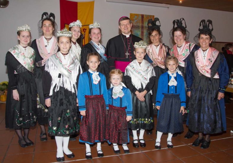 Der Festgottesdienst, den Erzbischof Stephan Burger, Pfarrer Bonaventura Gerner und Pfarrer Peter Seibt, Pfarrer Alfred Haas sowie Bruder Markus und Bruder Pirmin konzelebrierten, war die zusagende Würdigung des Apostel der Alamannen und Oberharmersbacher Kirchenpatrons. Wolfram Dreher hatte als Dirigent 70 Sängerinnen und Sänger aus den beiden katholischen Kirchenchören Zell a. H. und Oberharmersbach auf die »Kleine Orgelsolomesse in C« (W. A. Mozart) eingestimmt. Solisten und Instrumentalisten sowie Organist Dieter Benson gestalteten ein melodisches Kirchenwerk, das den feierlichen Gottesdienst bis zum letzten Takt trug und dem die Gläubigen spontanen Beifall zollten. Einen musikalischen Gruß entbot eine Gruppe der künftigen Kommunionkinder unter der Leitung von Nicole Lehmann dem Gast aus Freiburg. Im Pfarrzentrum bestand anschließend die Möglichkeit, mit Erzbischof Stephan Burger beim Stehempfang ins Gespräch zu kommen.