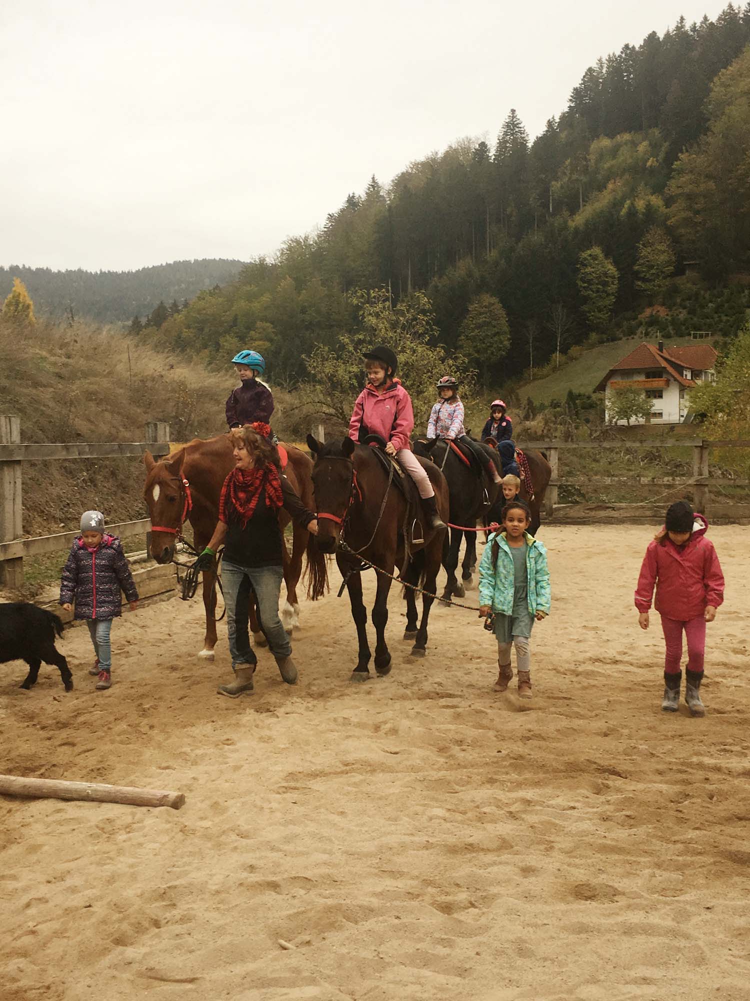 Bewegung und Teamgeist wurden beim gemeinsamen Beginn am Mittwoch trainiert. Das Spiel »Zeitungstanzen« bereitete allen viel Freude. Anschließend haben die Schülerinnen und Schüler an zwei unterschiedlichen Workshops teilgenommen. Auch hier wurden die Lehrkräfte durch Eltern, die DJK Oberharmersbach und das DRK unterstützt. Angeboten wurde Reiten, Knetseife, Waldgeister, Entspannungsübungen, Tischtennis, Trampolin springen, Turnbeutel gestalten, Brot backen und mit selbst hergestellten Brotaufstrichen im Anschluss verzehren, Windlichter filzen, Töpfern und auf Mantrailing mit der Rettungshundestaffel des Roten Kreuzes. Jeder Workshop dauerte anderthalb Stunden, in der 6. Stunde fand in den jeweiligen Klassen eine Reflexion statt.