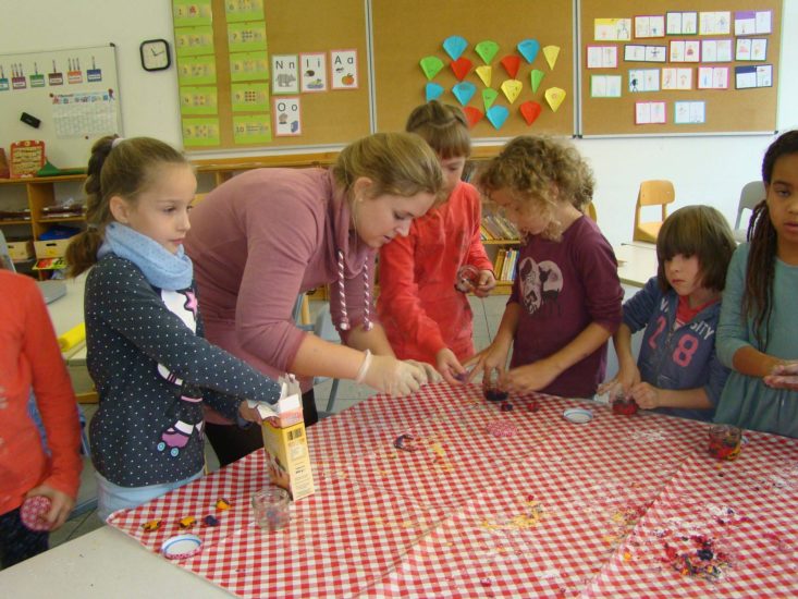 Auch am Donnerstag wurde die Schulgemeinschaft wieder mit einem gemeinsamen Start aller Klassen gestärkt. Diesmal lernten die Kids, wie man mit Übungen zur »Lifekinetik« die Konzentration und somit das Lernen fördern kann. Im anschließenden Klassenlehrerunterricht wurde das Thema Lebensmittel vertieft: Klasse 1 besprach verschiedene Gemüsesorten, nachdem nochmals gemeinsam gefrühstückt wurde, Klasse 2 bereitete einen Karotten-Apfel-Salat zu, Klasse 3 machte Esskastanien, die die Kinder bei der Wanderung am Montag gesammelt hatten und tranken frischen Apfelsaft dazu. Bei Klasse 4 standen Dinkelvollkornwaffeln mit selbstgemachtem Apfelmus auf dem Programm.