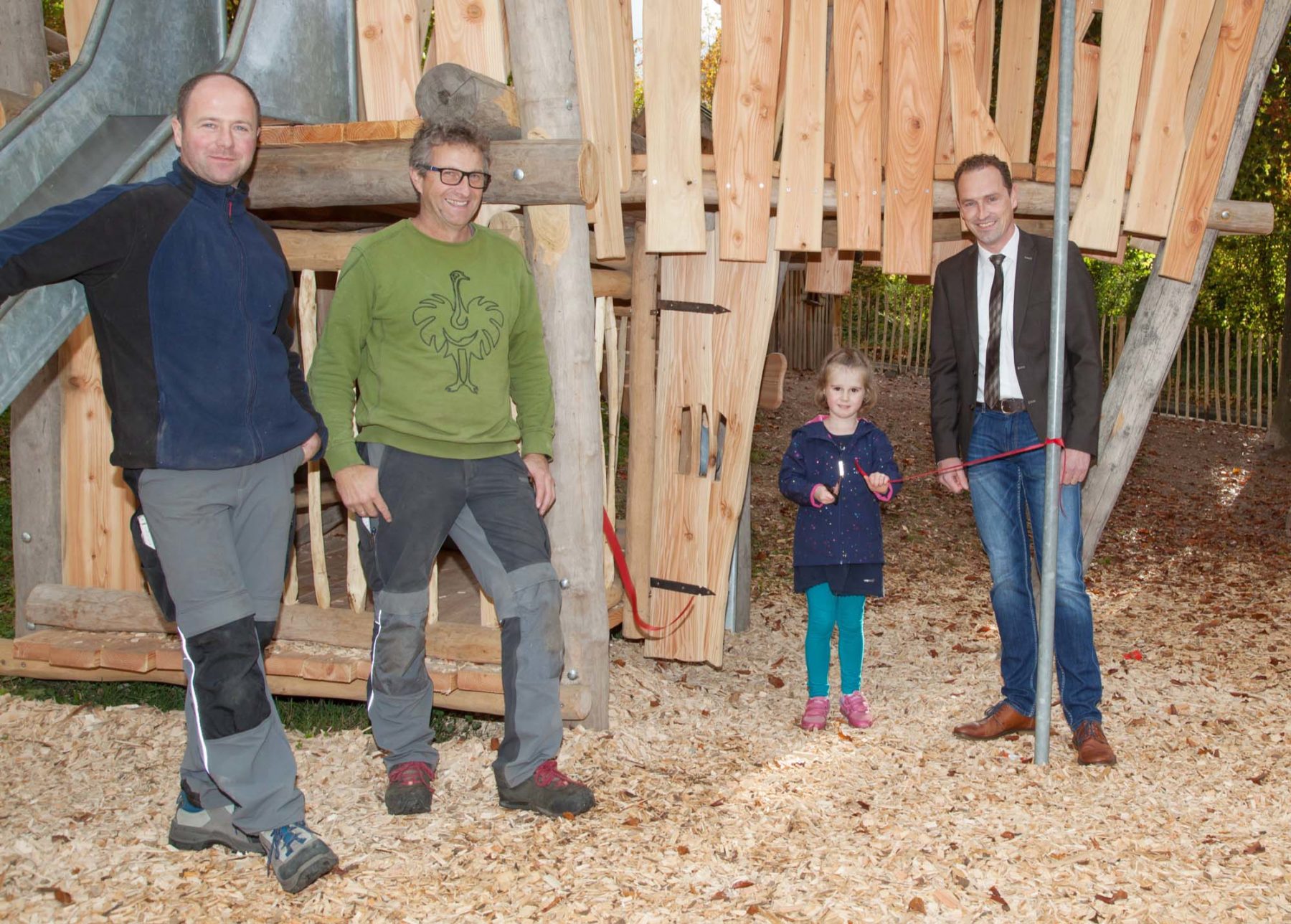 Tabea stand bei der offiziellen Übergabe im Mittelpunkt. Bürgermeister Richard Weith hatte ein rotes Band gespannt, das Tabea durchschneiden durfte. Sie ist sichtlich zufrieden, aber wenn man sie beim Rundgang über den Spielplatz beobachtet, könnte man beinahe meinen, sie sei in Gedanken schon mit dem nächsten Projekt befasst, aus der Rubrik »Kinder an die Macht…«