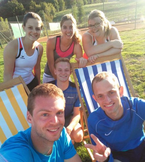 Die Meister-Mannschaft der TSG Oberharmersbach/Nordrach (von links hinten): Annalena Schnurr, Kristin Lehmann, Carina Frey, Daniel Schöner, Andreas Lehmann und Markus Furtwengler. Meisterlich, aber nicht auf dem Bild, sind auch Steffen Till, Marcel Till, Michael Schöner und Daniela Bleier. Foto: TSG Oberharmersbach/Nordrach