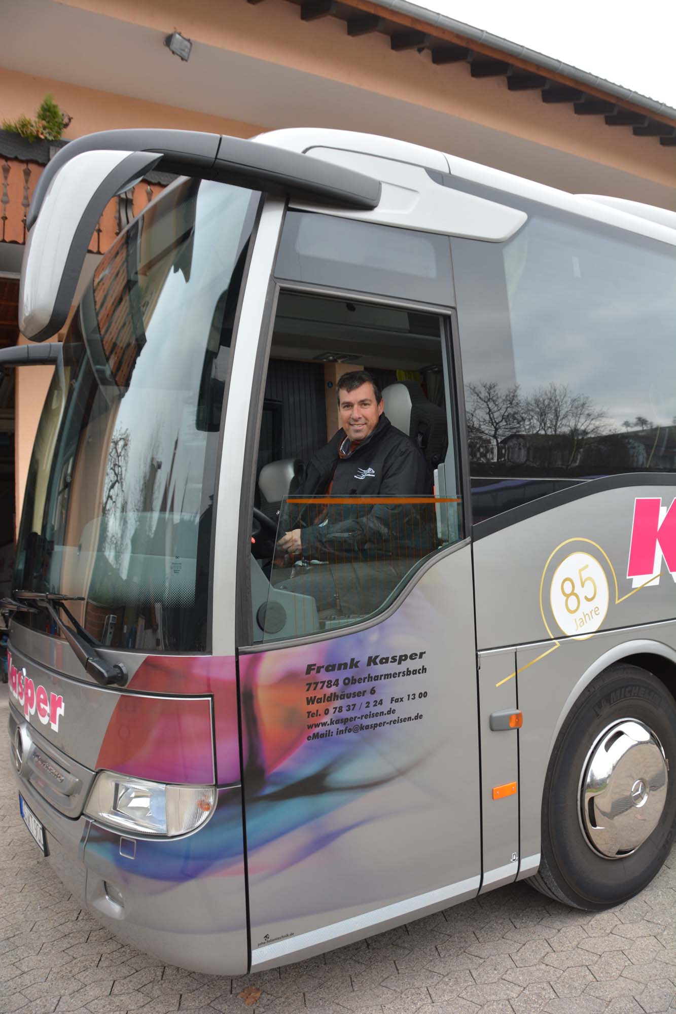 Foto: Hanspeter SchwendemannBereits seit dem Jahr 1999 leitet Frank Kasper das Familienunternehmen, für das Albert Kasper vor 85 Jahren den Grundstein gelegt hat. Aus einfachen Anfängen wuchs ein leistungsstarkes Reiseunternehmen, das heute 19 Mitarbeiter beschäftigt. Die Busflotte umfasst vier Fahrzeuge. Zwei 4-Sterne-Reisebusse bieten Platz für je 45 Personen. Ein weiterer Omnibus kann 50 Fahrgäste befördern. Der vierte Omnibus wurde dieses Jahr in den Dienst gestellt.