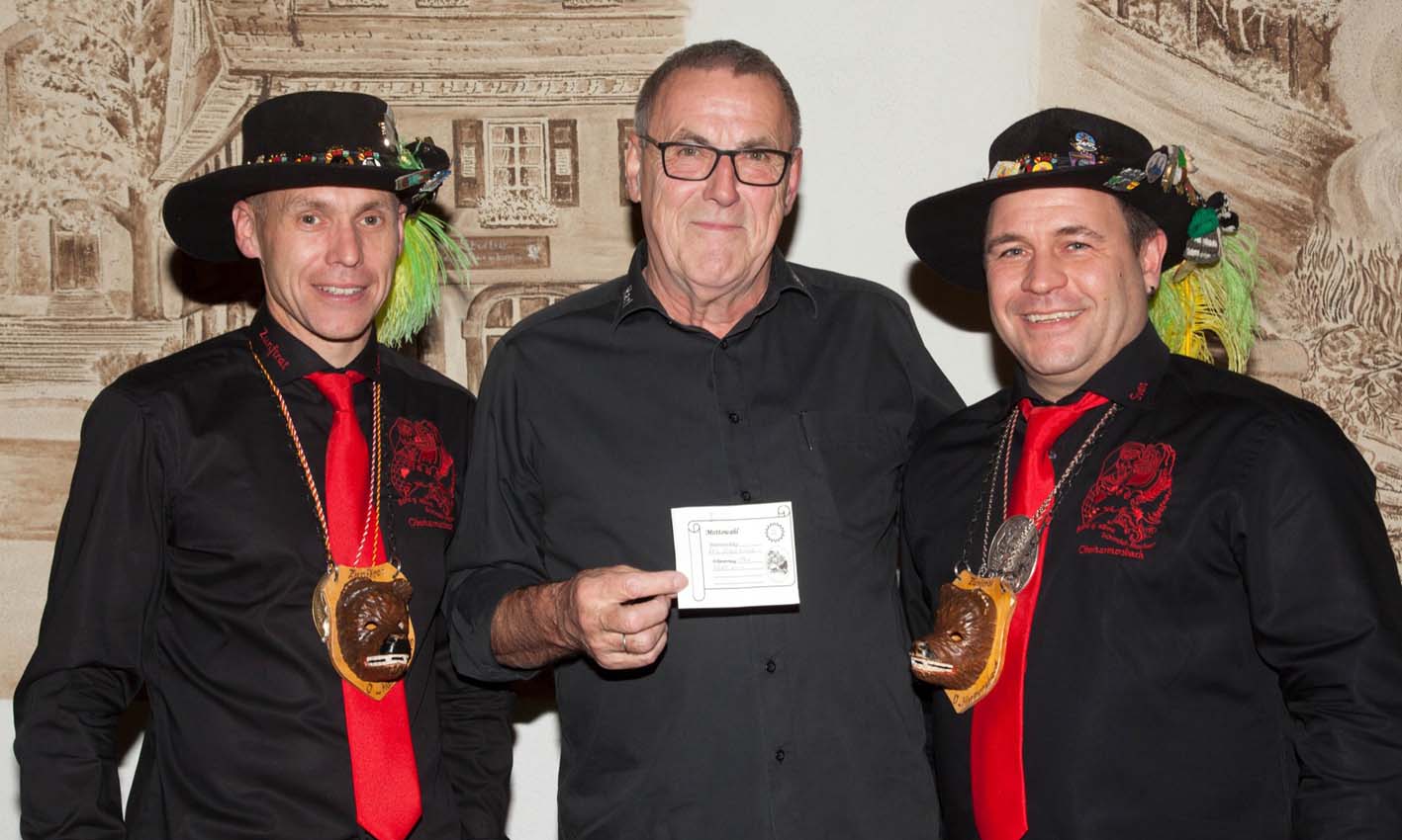 Bei der Wahl des Mottos anlässlich der Fasenteröffnung im Bärencafé machten es sich die Besucher nicht leicht. 19 Vorschläge waren eingegangen. Die am Umzug beteiligten Gruppen trafen eine Vorauswahl und legten schließlich fünf Mottovorschläge der Versammlung vor. Mit denkbar knappem Vorsprung landete nach geheimer Abstimmung das Motto »It’s Showtime – Oberharmersbach lädt ein« auf dem ersten Platz. Nur zwei Stimmen weniger entfielen auf den Mottovorschlag »Das versteht keiner, nur eine Farbe ist im Eimer.« Petra Roth vom Fanclub des SVO hatte mit ihrer Idee die Mehrheit überzeugt und wird am »Schmutzige Dunschdig« die Mottokrone erhalten.