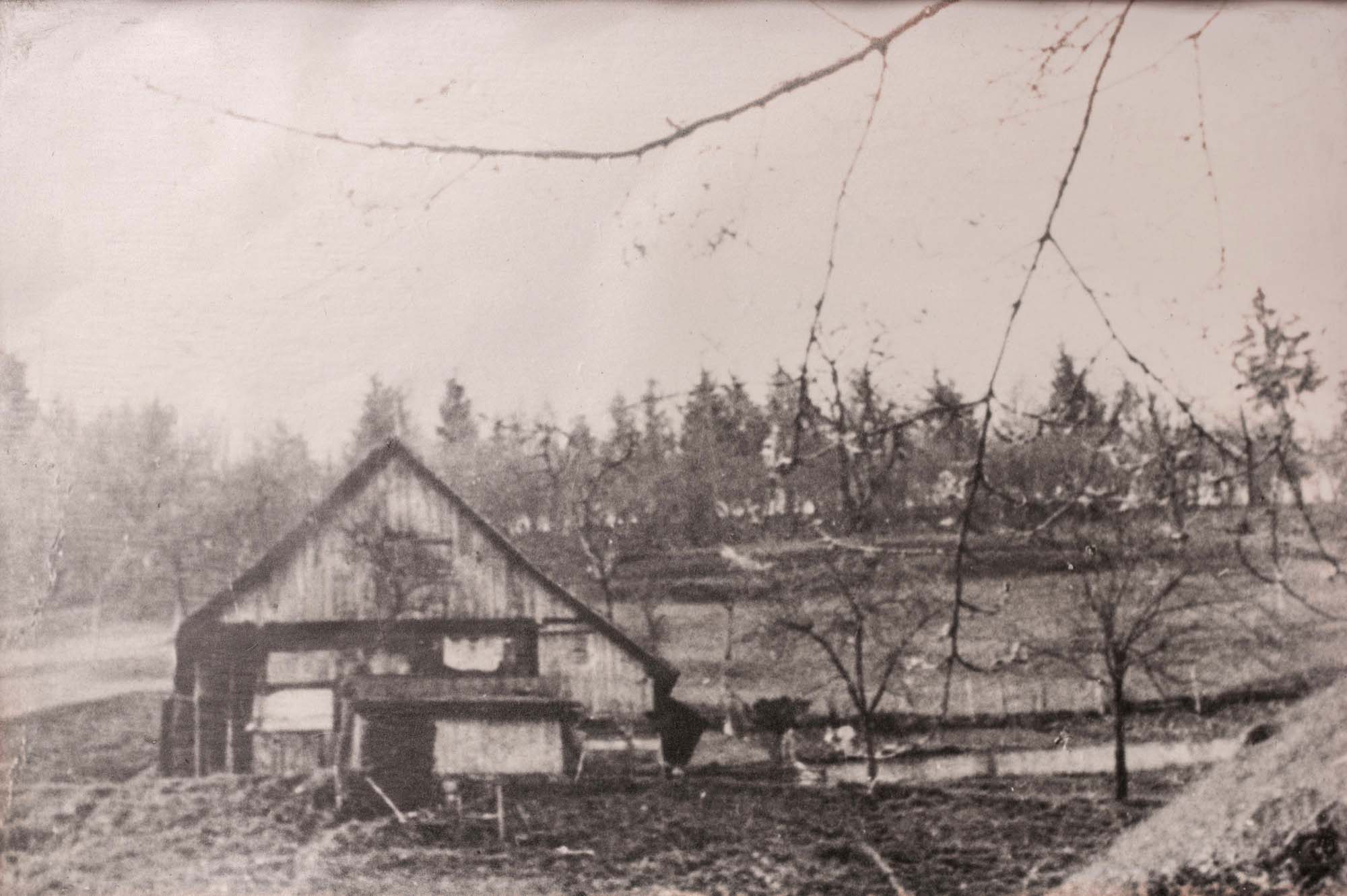 Lösung: Das Bild wurde im Jahre 1942 aufgenommen und zeigt »’s Eckli-Steffe« (Anwesen Armbruster) im Riersbachtal gegenüber des Steinbruchs. Das Haus, so wie es Bild zeigt, wurde 1962 abgerissen und neu aufgebaut. Die exponierte Lage am Hang hat wohl dazu geführt, dass dieses Anwesen zuvor als »’s Eckli Christe« bezeichnet wurde, denn bevor Stefan Lehmann mit seiner Frau Cäcilia das Anwesen übernommen hatte, hatte Leonhard Armbruster die von hier stammend Theresia Schwarz geehelicht. Deren Vater Stefan wiederum war ein Sohn von Christian Schwarz, auf den der frühere Namen zurückgeht und dessen Familie wohl den Umzug ins Riersbachtal veranlasst hat, denn das abgebildete Haus hatte noch im 18. Jahrhundert im Grünwinkel im Dorf gestanden. Da der damalige Eigentümer Feld im Riersbach besaß, wurde das Haus abgebrochen und in Einzelteilen mit einem Pferd an seinen künftigen Standort transportiert.
