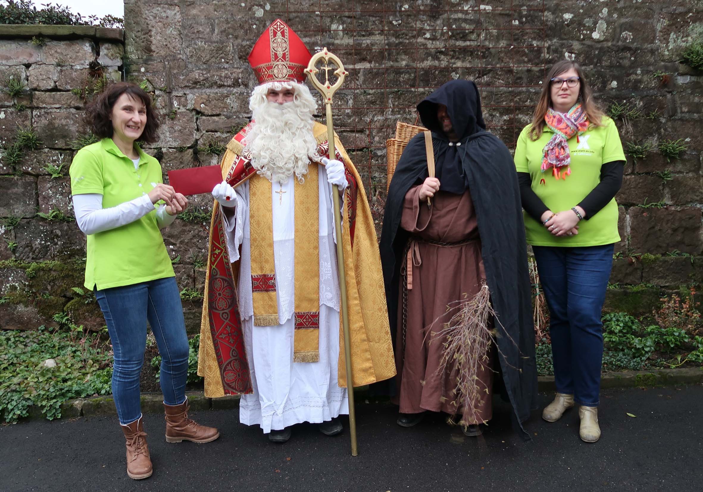 Nachdem im Oktober Erzbischof Burger in Oberharmersbach ein Zeichen gesetzt hat, will sich auch der »Bischof« von Myra dem anschließen und Stellung gegen den Missbrauch von Kindern beziehen. Den »Lohn« für ihre abendlichen Besuche spenden der Nikolaus und sein Rubelz dieses Jahr an S.t.a.r.k! e.V. Den Betrag von 350 Euro kann der Verein gut gebrauchen, um sich weiter aktiv gegen Kindesmissbrauch und Mut zum »Nein«-sagen einzusetzen. Im nächsten Jahr wird S.t.a.r.k! e.V. am 17. bis 19. März in Zell am Harmersbach wieder das Aktionsprojekt »Pfoten weg!« durchführen, das Kinder stärkt, sich gegen unangenehme Nähe eines Menschen zu wehren und »Nein!« zu sagen.