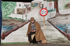 Das Thema Brücken durfte beim Dörfle-Ball nicht fehlen. Jetzt hat das Schicksal wieder zugeschlagen. Nicht um Befahren und schon gar zum Übernachten taugt die Riersbach-Brücke. Ein »Penner« (Lukas Müller) hat das ganze Elend in Reimen und mit Mund­harmonika-Begleitung zusammengefasst und einen (nicht ganz ernst zu nehmenden) Ausweg vorgeschlagen: