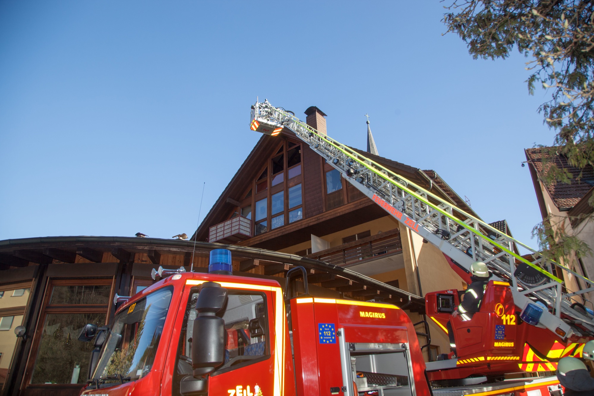 Durch den Einsatz von drei Atemschutztrupps konnte der Schwelbrand schnell gelöscht werden. Insgesamt waren 30 Einsatzkräfte vor Ort, informierte Feuerwehrkommandant Dietmar Lehmann. Aufgrund der Besonderheit des Objekts wurde automatisch auch der Löschzug der Zeller Feuerwehr alarmiert. Dieser war mit 21 Kräften vor Ort und brachte die Rettungsleiter in Stellung. Die aufgebaute Riegelstellung musste nicht aktiviert werden. Da bei der Alarmierung nicht bekannt war, wie viele Personen im Hotel vom Feuer bedroht sind, war auch der Rettungsdienst mit einem verstärkten Aufgebot im Einsatz.