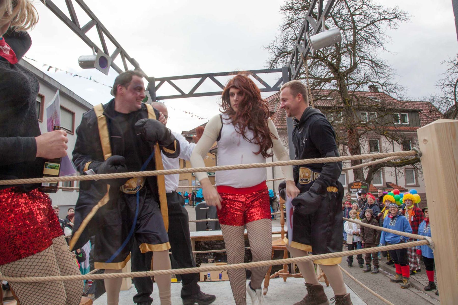 Ein großes Sägeblatt rotierte auf dem Wagen der »Waldhiesler«, die damit, ganz und gar unblutig, einen Menschen in zwei Teile zerlegten. »Richtig auf die Fresse« gab es bei den Zuwäldern. »Rocky Balboa VII« lieferte sich einen harten Fight im Ring und durfte die Ovationen entlang der Umzugsstrecke dafür entgegennehmen. Mit dabei war eine rollende Doping-Bar. Die Gruppe »Ewald Braun&Co« hatte einige Figuren aus Asterix mit treffenden Kostümen nachempfunden, selbst Idefix durfte da nicht fehlen. Der »Tanz der Vampire« (Kommando Bimm-bamm) und die »Wild Wild Jauschbach Show« mit Cowboys und Cowgirls beschlossen den Umzug.