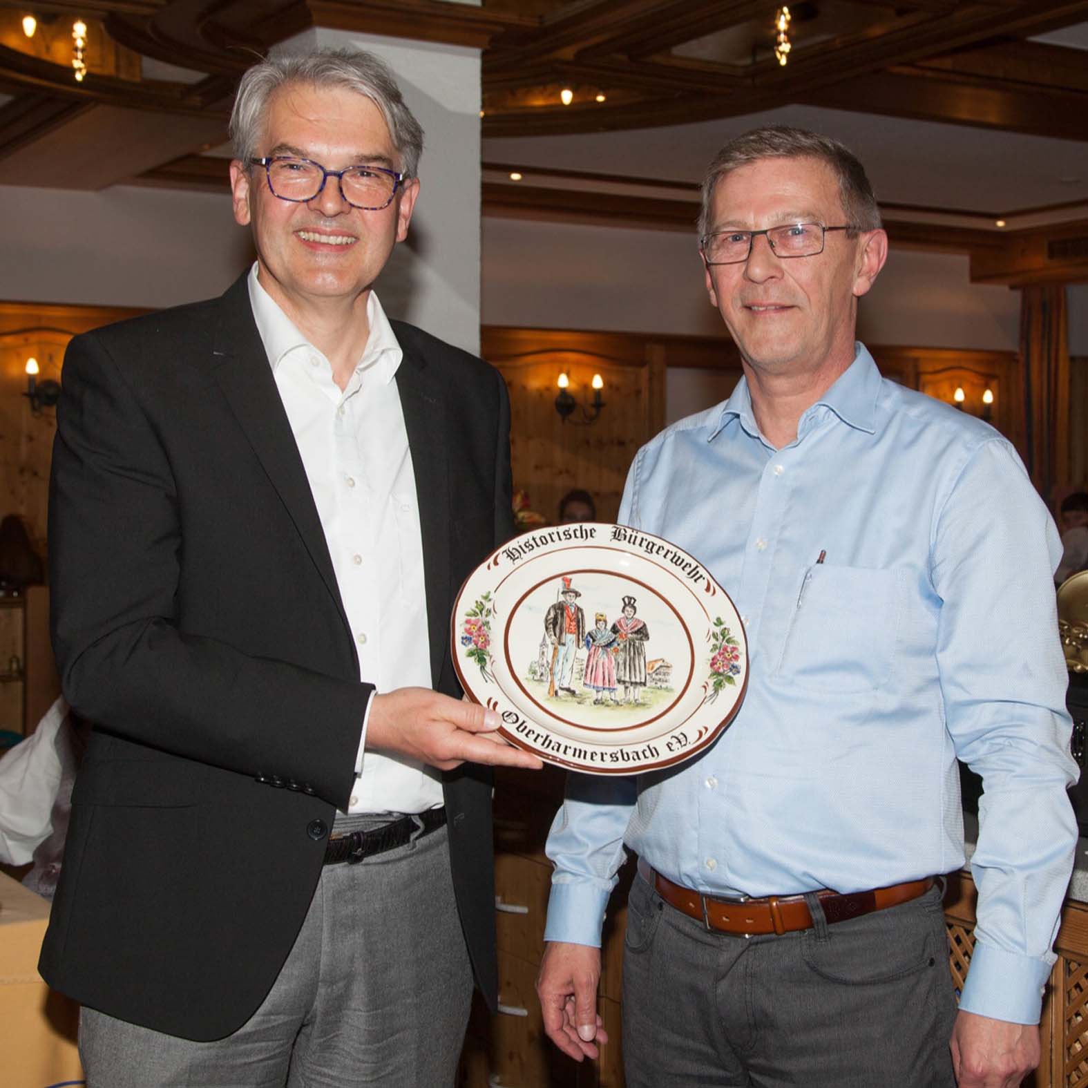 Klaus Laifer bedankte sich als Vorstand und Kommandant der Historischen Bürgerwehr für die 30 Jahre währende gute Zusammenarbeit. »Vor allem die gemeinsam ausgerichteten Zapfenstreiche waren nicht nur ein militärisches Zeremoniell, sondern auch jeweils ein musikalisches Erlebnis«, schilderte Laifer gleichlautende Eindrücken von Zuschauern. Ein Wandteller soll Rappenecker an diese erfolgreiche Arbeit erinnern.