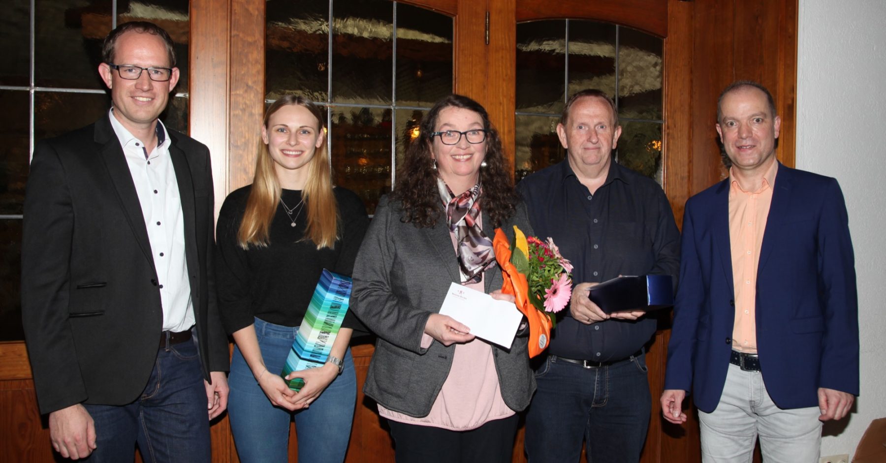 Verabschiedung: Jürgen Fritsch (links) und Horst Lehmann (rechts) verabschiedeten (von links) Simone Lehmann, Barbara Maier und Herbert Isenmann. Letztere wurden für ihr langjähriges Engagement in der Vorstandschaft zu Ehrenmitgliedern ernannt.