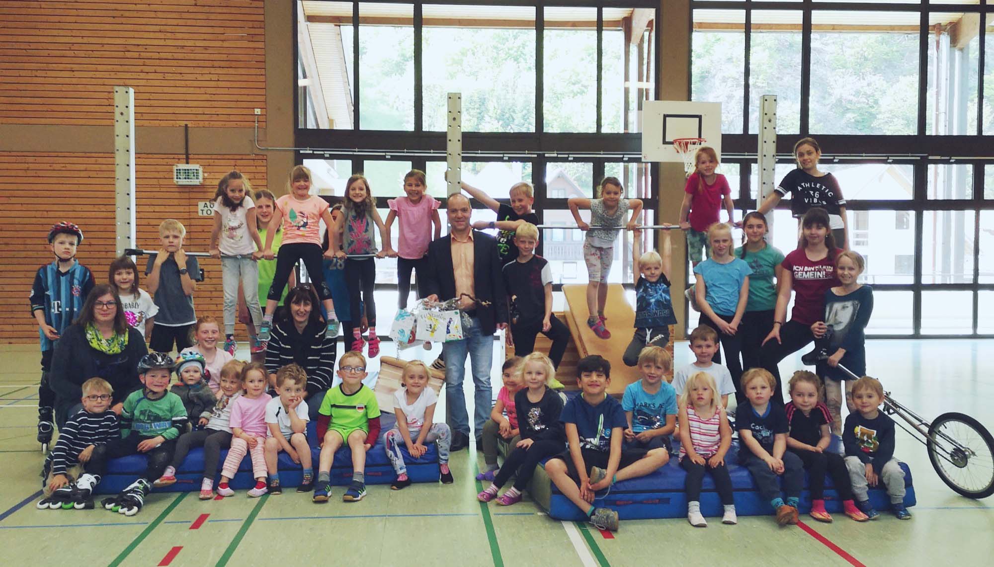 Im April feierte Horst Lehmann, Vorstand der DJK Oberharmersbach, seinen 50. Geburtstag. Die Übungsleiterinnen Mathilde Zimmermann und Kathrin Lehmann haben mit einem Präsent zusammen mit den Kindern – der Zukunft der DJK – ihm eine ganz besondere Freude bereitet.