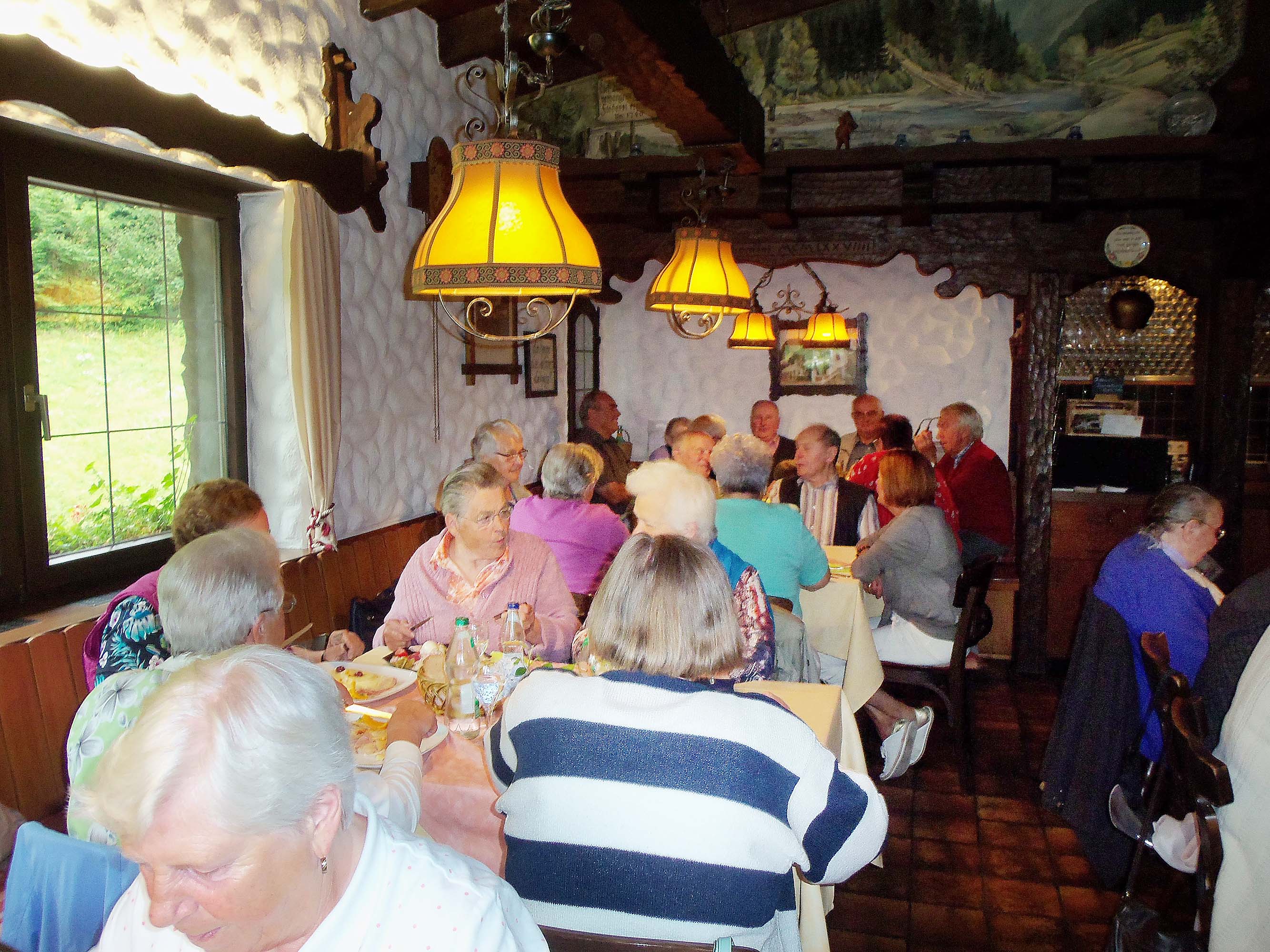 Der Tag hatte mit Regen begonnen, aber während des Aufenthaltes zeigte sich die Sonne und es wurde noch ein schöner Nachmittag. Als alle Ihren Platz gefunden hatten und mit Kaffee und Kuchen oder mit einem guten Essen bewirtet waren, gab es viel Zeit für Gespräche und die Zeit verging wie im Flug. Gut gestärkt brach der Bus zur Heimfahrt auf und es endete ein schöner, geselliger Nachmittag.