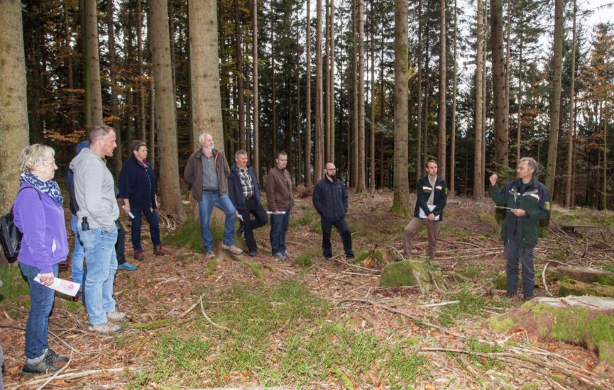 Ein besonderer Augenmerk legt man vor allem auf die Entwicklung der Weißtanne. Da sie gerne vom Rehwild verbissen wird ist hier jagdliches Eingreifen und Verbissschutz notwendig. Er bedankte sich in diesem Zusammenhang beim anwesenden Jagdpächter Eugen Lehmann für sein großes Engagement in diesem Bereich. Die Buche gelte es ebenfalls im Auge zu behalten. »Laub ist in dieser Höhenlage auf sandigen Böden ganz wichtig« ergänzte Simeon Springmann. Es verbessere die Bodenqualität und lasse vor allem den Boden nicht so schnell austrocknen.