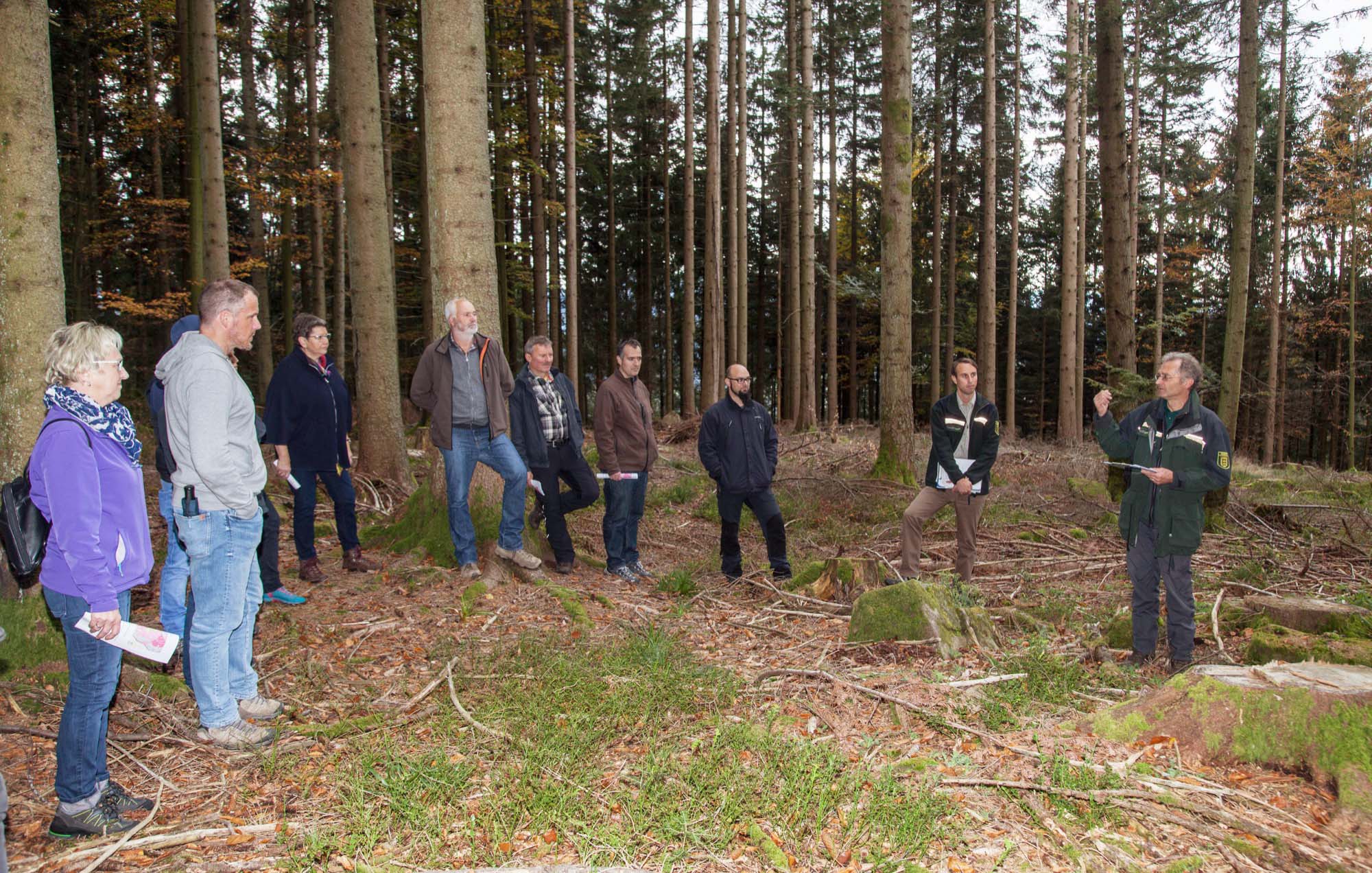 Verschiedene Haltepunkte zeigten den Exkursionsteilnehmern punktuell die Probleme des Gemeindewaldes. Auf einer Hochfläche beim Rothmannseckle an der Gemarkungsgrenze zu Nordrach zeigte Revierförster Hans Lehmann eine größere nach Käferbefall geräumte Fläche. »Wir werden hier, wie auch nach dem Sturm Lothar, zunächst beobachten, was sich an Naturverjüngung entwickelt und danach passende Holzarten ergänzen«, erläuterte Lehmann die Strategie.