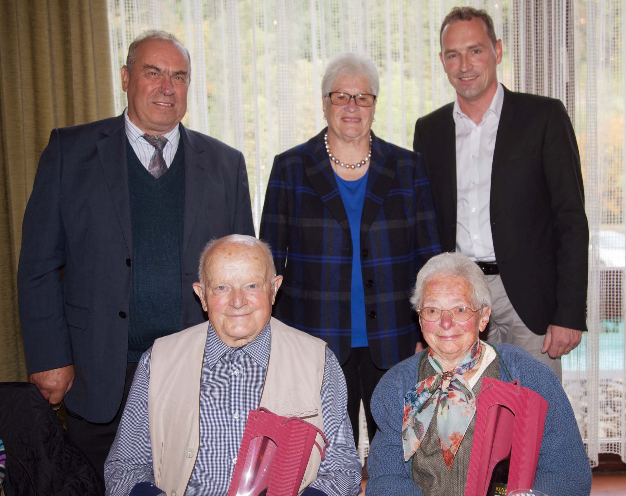 Wie jedes Jahr durften die älteste Besucherin und der älteste Besucher ein Weinpräsent entgegennehmen. Mit 94 Jahren war heuer Anna Huber (»d’Bischofsbieri«) die älteste Besucherin und Edmund Lehmann ließ es sich mit 89 Jahren nicht nehmen, die Veranstaltung zu besuchen.