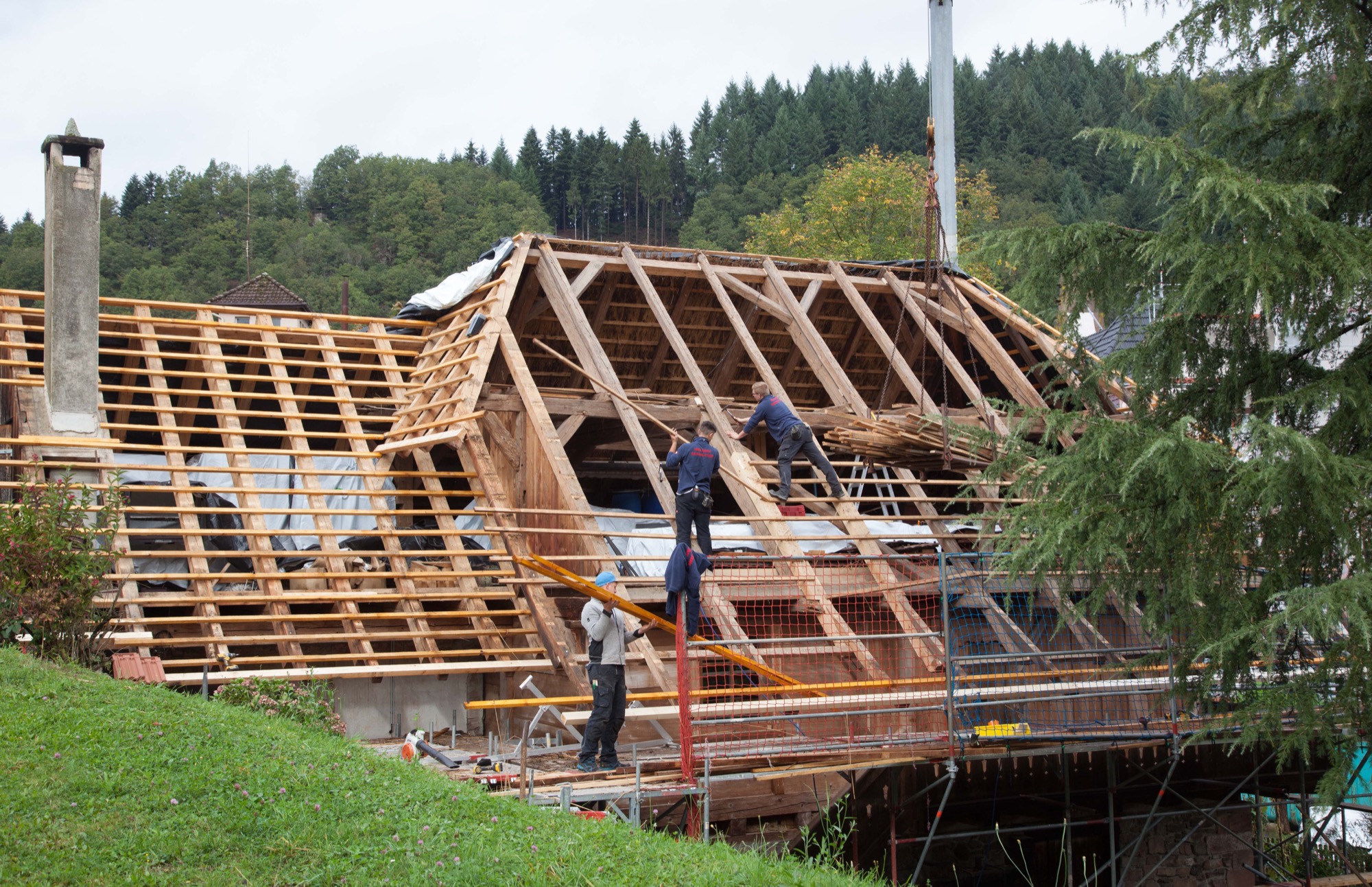 Kaum war das günstigste Angebot für die Sanierung des Speicherdaches vom Gemeinderat gebilligt, hatte die beauftrage Firma Schnaitter aus Hofstetten nur zwei Tage später das Gerüst erstellt, um mit den Bauabeiten zu beginnen. So erhält der Historische Speicher in der Ortmsitte noch vor dem Winter sein neues Dach.