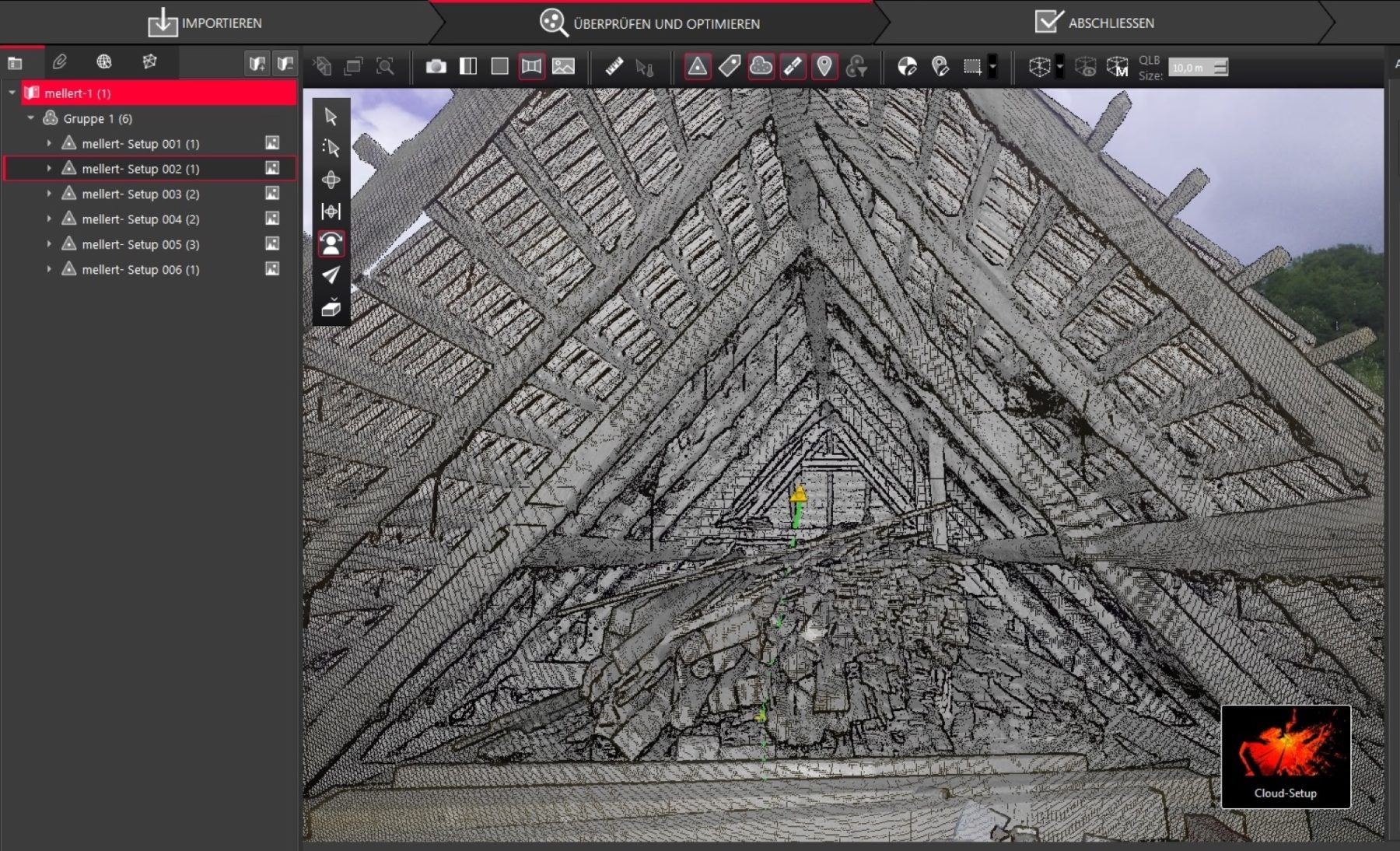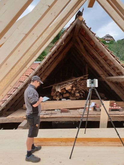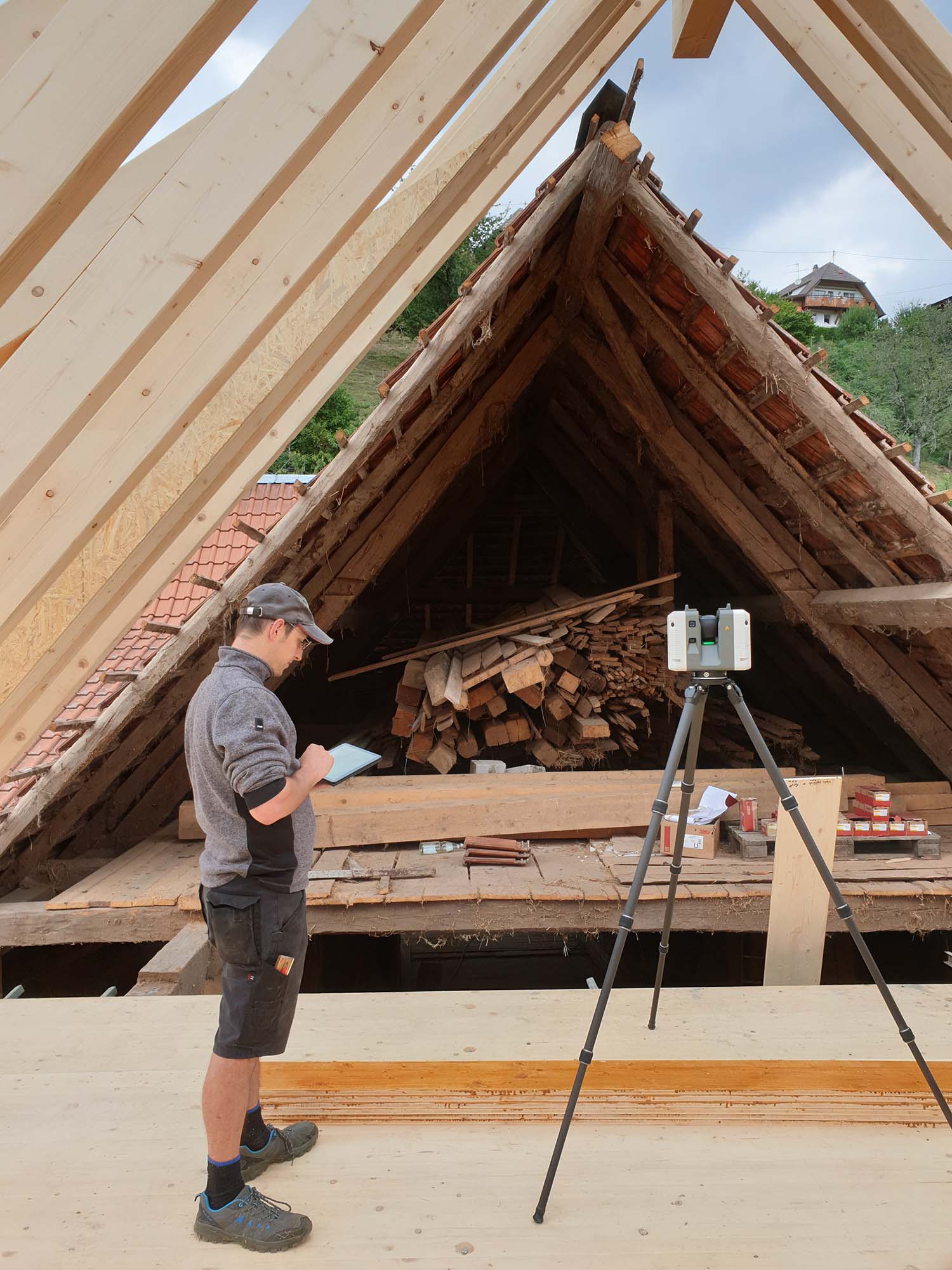 Ein weiterer Grund für die Kaufentscheidung war die enorme Kosten- und Zeitersparnis, die ein solcher Scanner mit sich bringt. Benötigten doch früher zwei Zimmerer für die Bestandsaufnahme eines großen Gebäudes mit Meterstab und Maßband bis zu zwei Tage. Eine Verbesserung brachten die herkömmlichen Tachymeter, hier benötigte ein Mann nur noch einen halben Tag für die Vermessung. Der Leica RTC360 Scanner nimmt selbst große Gebäude, wie Bauernhöfe, innerhalb weniger Minuten auf.