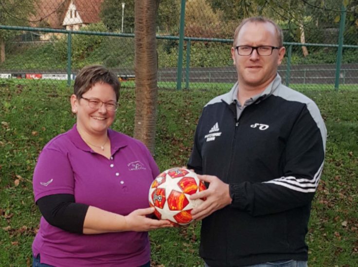 Als Dank für das Bereitstellen einer Kabine als Abstellraum für ihre Verkaufswaren am letztjährigen Weihnachtsmarkt, spenden die Landfrauen dem SVO den Spielball für die Partie gegen Spitzenreiter Niederschopfheim. Auf dem Bild übergibt Magdalena Armbruster den Ball dem ersten Vorsitzenden Sebastian Schneider mit den besten Wünschen, dass der Ball dem SVO Glück bringen möge und mindestens einmal mehr im gegnerischen Gehäuse landet.