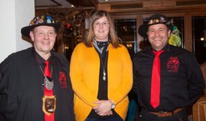 Wie jedes Narr wurden mit kaltem Wasser die neuen Mitglieder mit ihren Masken (Thomas Vollmer, Schindelmocher; Samuel Vollmer und Lucas Lehmann, Steinteufel) sowie die Zunfträte (Linda Huber, Timo Golla, Lukas Spitzmüller) in die Bärenzunft aufgenommen.