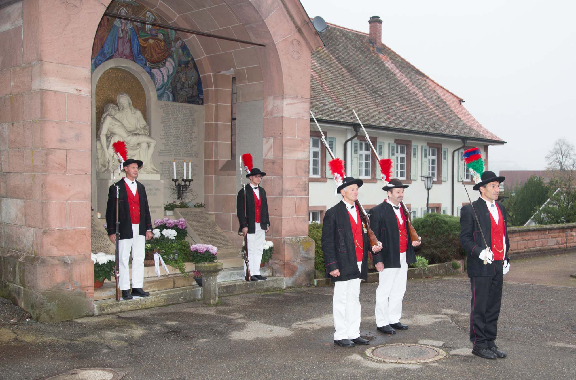 Die Ehrenwache der Historischen Bürgerwehr beim Oberharmersbacher Kriegerdenkmal am Volkstrauertag zählt zu den jährlich wiederkehrenden Aufgaben der Historischen Bürgerwehr, um der Gefallenen und Vermissten beider Weltkriege und der Gewaltherrschaft zu gedenken. 76 Gefallene und acht Vermisste durch den Ersten sowie 110 Gefallene und 66 Vermisste im Zweiten Weltkrieg hatte die Gemeinde zu beklagen.