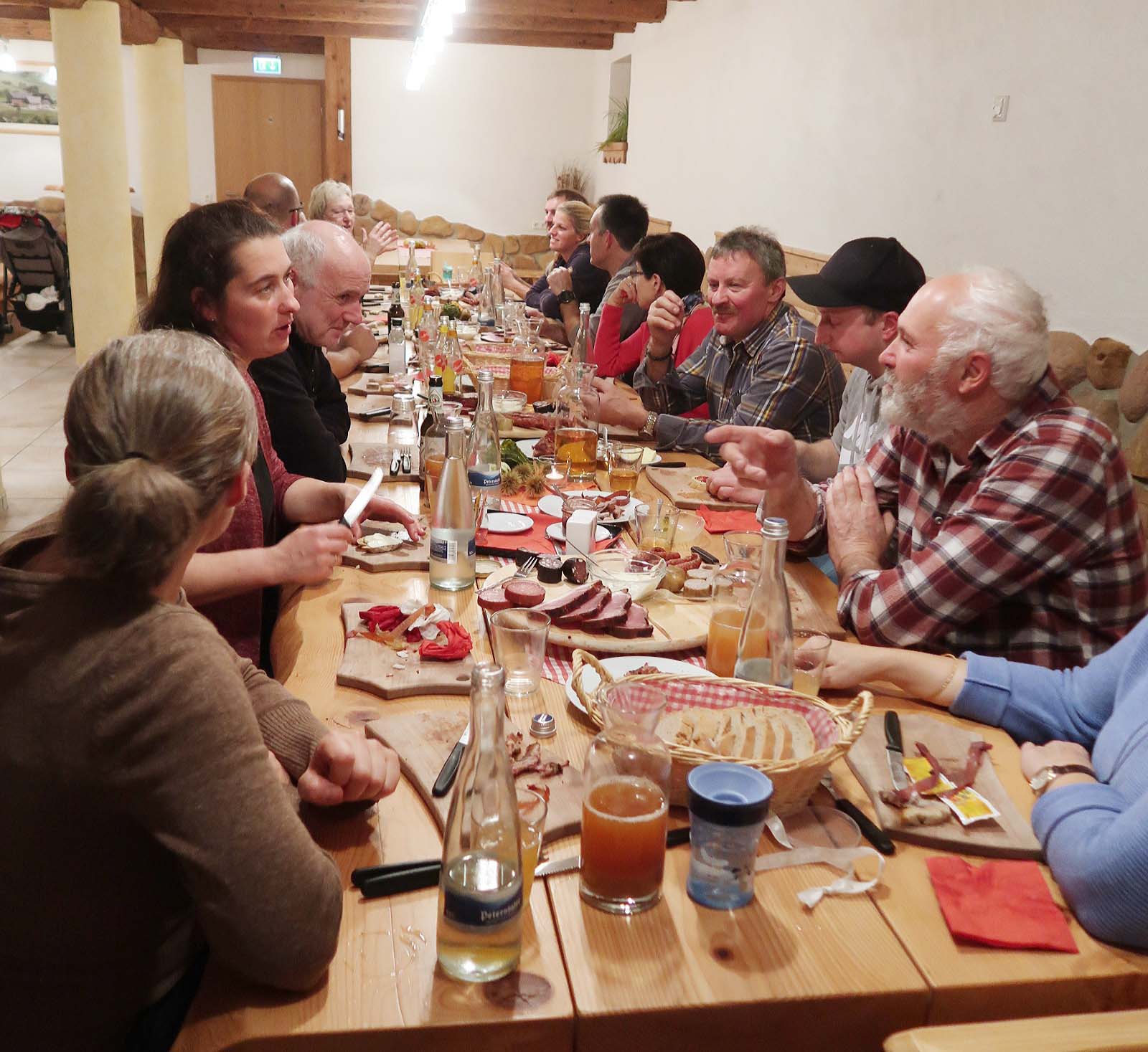 Von der Reichstalhalle führte die Tour über den Hademarweg zum unteren Pavillon. Anschließend ging es über das Jedensbachtal zum oberen Pavillion, wo eine kleine Rast bei herrlicher Aussicht über das Dorf statt fand. Zum Abschluss der Tour wurde dann bei Donissis Vesperstube eingekehrt. Bei leckerem Vesper, guten Gesprächen und dem einen oder anderen Glas Most ließ man dort den schönen Tag ausklingen. Anschließend waren sich alle einig, dass die Wanderung eine tolle Möglichkeit war, sich auch privat näher kennen zu lernen und es davon auf jeden Fall eine Wiederholung geben soll.