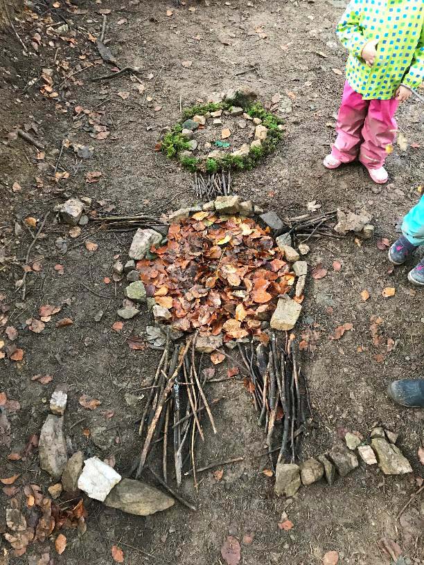 Aus Stöcken, Blättern, Moos und Steinen gestalteten die Kinder aus dem Kreativbereich ein »Waldmännchen«.