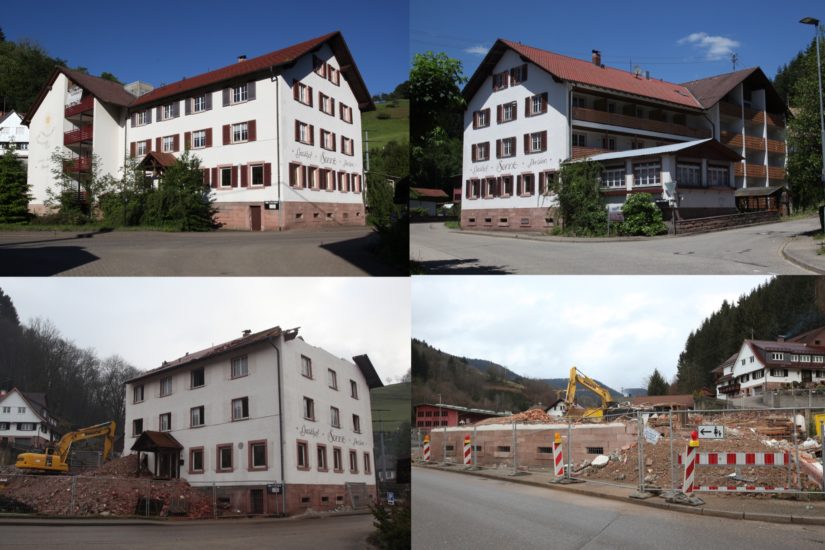 Oberharmersbach (kal). Keine 30 »Baggertage« liegen zwischen den beiden Ansichten (oben) und dem Zustand des Abbruchs (unten).