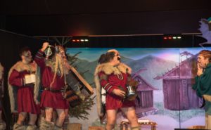 Die traditionelle Schlussnummer zeigt nicht nur die Kostüme, mit denen die Unterdorfer Fasentgemeinschaft beim Umzug auftritt. Sie bietet auch Gelegenheit nach allen Seiten auszuteilen. Als »Wikinger« kamen sie nach ihrem Streifzug durch das Tal in die Heimat zurück und mussten ihren Frauen, vor denen sie wohl Angst hatten, Rede und Antwort stehen. Das »größte und schönste Fest« hätten sie aufgemischt, so ihre Rechtfertigung und der Wikinger-Chef sei auch noch beim Friseur gewesen. »Huch, Du siesch jo us wie de ehemolig Chef vom Hombe«, stellte ihn seine Frau in den Senkel.
