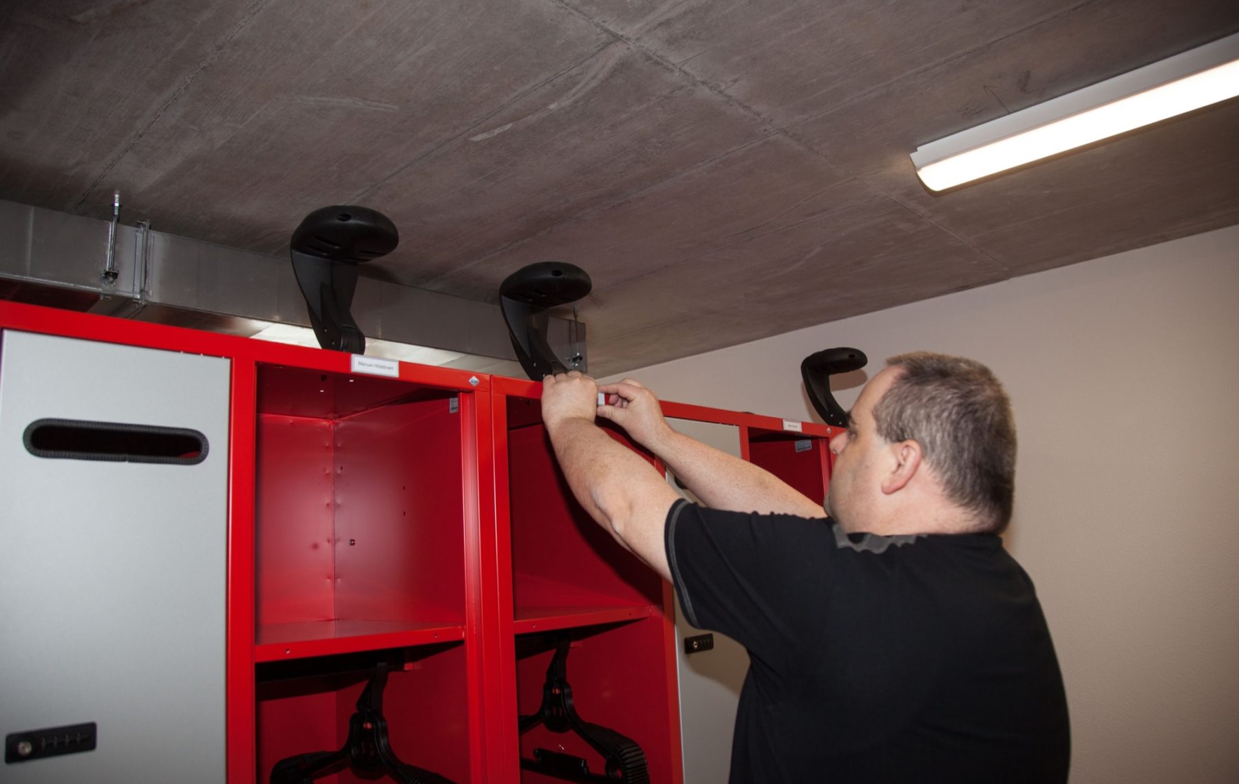 Für die 54 aktiven Wehrleute, darunter fünf Frauen, und die 16 Mitglieder zählende Jugendwehr bauten Mitglieder der Wehr im Erdgeschoss eine ausreichend große Anzahl von Spinden zusammen, räumlich entsprechend nach Männern und Frauen getrennt. Kommandant Dietmar Lehmann selbst kümmerte sich um die Beschriftung der Spinde.
