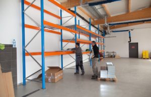 In der großen Fahrzeughalle werden die letzten Schwerlastregale montiert und deren Böden eingebaut. »Wir müssen auch während des Umzugs einsatzbereit bleiben« meint Rainer Lehmann. Der stellvertretende Kommandant behält beim Einräumen die Übersicht. Bindemittel, Sandsäcke, Tauchpumpen, Schläuche – alles findet geordnet nach und nach seinen Platz. Bisher lagerten diese Ausrüstungsgegenstände verteilt in den beiden Gerätehäusern im Dorf und Riersbach.