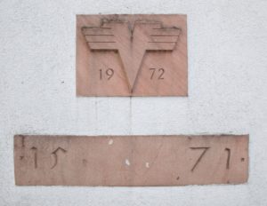 Restbestand: Der Grundstein mit dem Volksbanksymbol ver­körpert einen kümmerlichen Rest der Bankgeschichte.