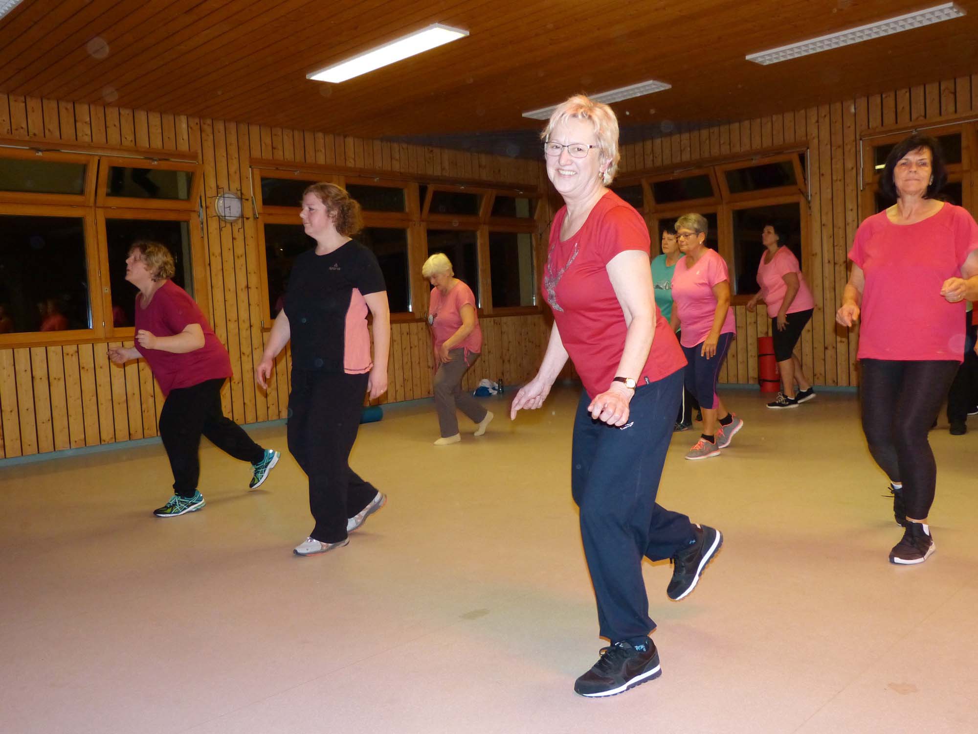 Anna Rombach (im Vordergrund) und ihre Gymnastikfrauen beim Aufwärmen. Foto: Inka Kleinke-Bialy
