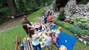 Im Rahmen des Oberharmersbacher Kindersommers hat die DJK-Jugend mit den Kindern an der Lourdesgrotte in Zuwald Kräuterbüschel gebunden.