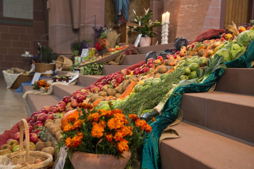 Heuer waren die Landfrauen an der Reihe, die auf den Stufen zum Chor die Vielfalt der Ernte aus Feld und Flur aufgebaut haben. Der Erntealtar war auch Mittelpunkt des Dankgottesdienstes und wird zusammen mit zusätzlichen Gaben der Bevölkerung an die Tafel in Offenburg gespendet.
