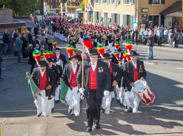 Was aber dort nach wie vor als Besuchermagnet wirkte, war und ist der Aufmarsch der Miliz- und Trachtenkapelle, des Spielmanns- und Fanfarenzugs sowie der Historischen Bürgerwehr. Die Fahnenparade auf dem Rathausplatz und der beeindruckende Einzug der über 130 Uniformträger in die große Pfarrkirche zum Festgottesdienst lockte Besucher aus nah und fern. Diese folgten auch dem Aufmarsch vor dem Pfarrhaus mit dem traditionellen dreifachen Salut als Reverenz für die Geistlichkeit.